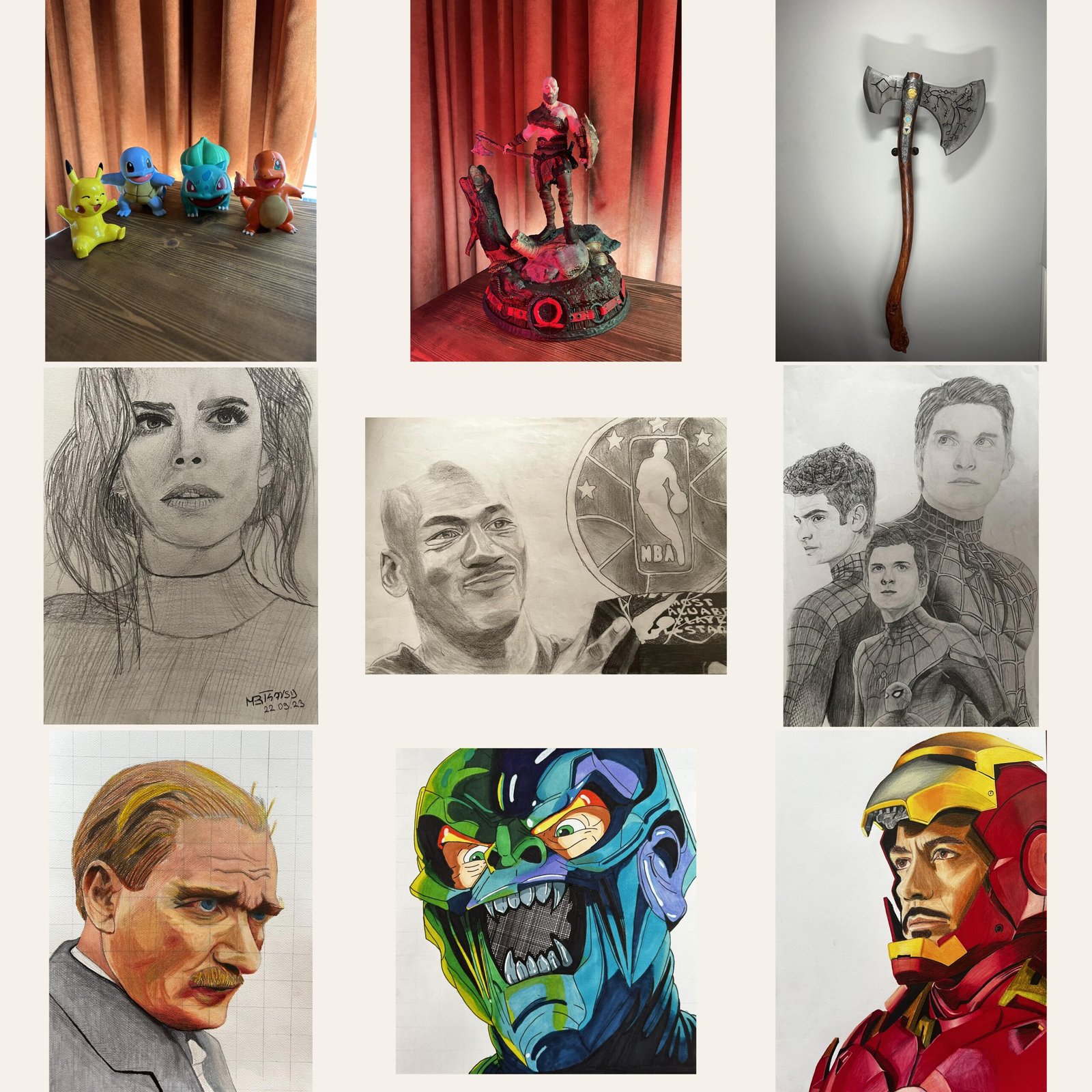 Arkadaşımla birlikte, 3D yazıcıda istenilen figürleri en iyi şekilde basıp, her birini kendi ellerimizle özenle boyuyoruz. Yaratıcılığımızı ve el emeğimizi birleştirerek, her çalışmada özgün ve kaliteli sonuçlar elde etmeye özen gösteriyoruz. Bu süreçte hem iş birliğimiz hem de detaylara verdiğimiz önem ön planda.